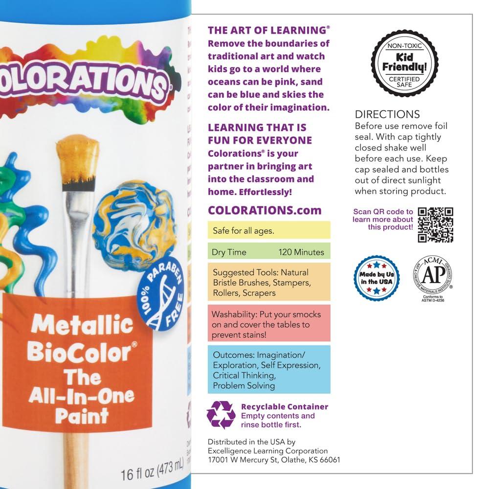 Colorations Biocolor Paint, 26 oz, 26 Colors, Non-Toxic Paint, Kids Paint, Craft Paint, Resist Art Painting, Paint for Marbling, Blotting Paint, Window Paint, Paint for Children, Foil Painting