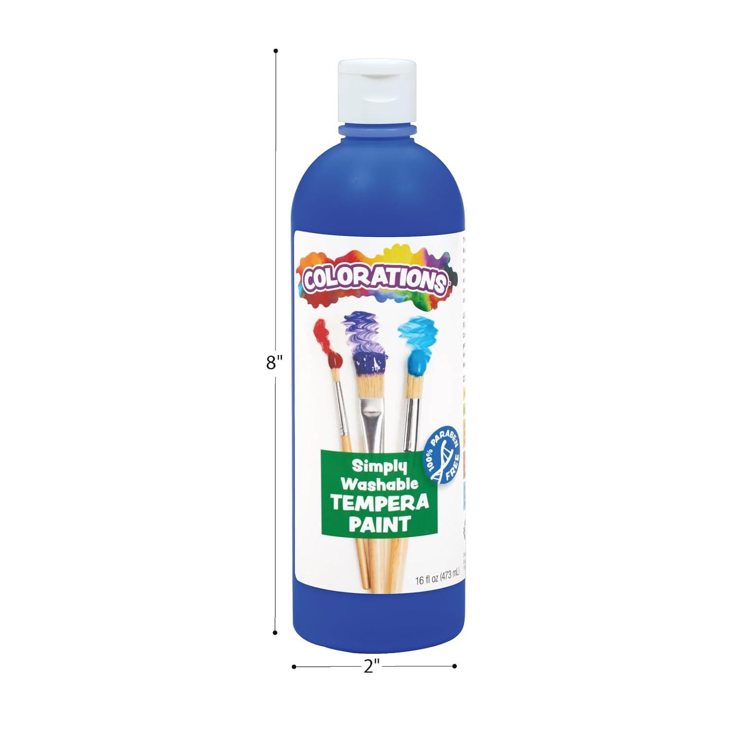 You won't find a better quality washable tempera anywhere- ! independent lab testing shows that Colorations simply washable tempera washes better than the leading name brand – at almost half the price. Our creamy formula goes on smoothly with bright, opaque color. If you're not completely satisfied, we'll refund your money! 16 oz. Bottles available in 17 colors. (Smooth, rich consistency that dries to a matte finish; enjoy painting activities with confidence! ultra-washable formula easily washes off skin, fabric, and surfaces with just soap and water; affordable enough for everyday paint projects – use with easels, stampers, sponges, rollers, and brushes; the largest washable color palette available – 19 bold, washable colors; made in the U. S. A. By discount school supply; AP certified) – discount school supply item # WSTVI.